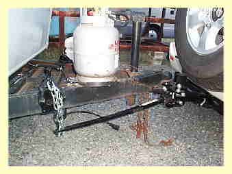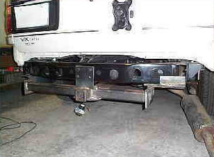 ヒッチメンバーのクロスバー部分をけん引車のピンドル部に接合させました。 |
