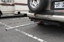 国産乗用車のシャーシに取り付けられたヒッチメンバーの最後部に、2インチサイズの角パイプを差し込み、