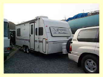 けん引している、キャンピングトレーラーや
