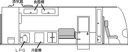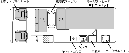 定員8名/就寝7名/セカンド サードシート個別のテーブル 回転式カセットトイレ等