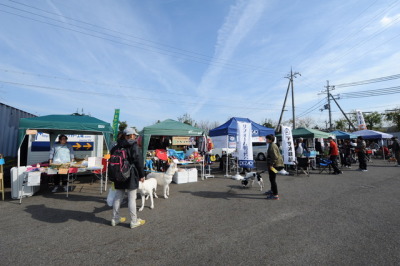 おやつの移動販売車やワンちゃんグッズのショップがたくさん集まり、